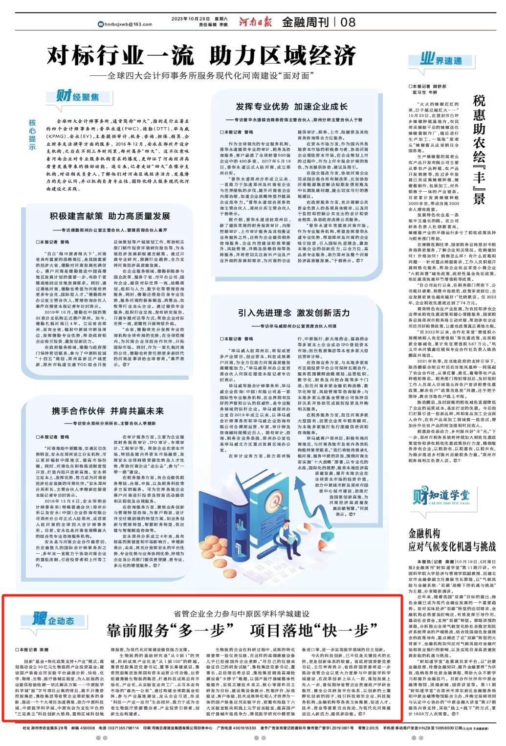 靠前服務“多一步” 項目落地“快一步”——河南日報刊載集團全力參與中原醫(yī)學科學城建設2023.10.30
