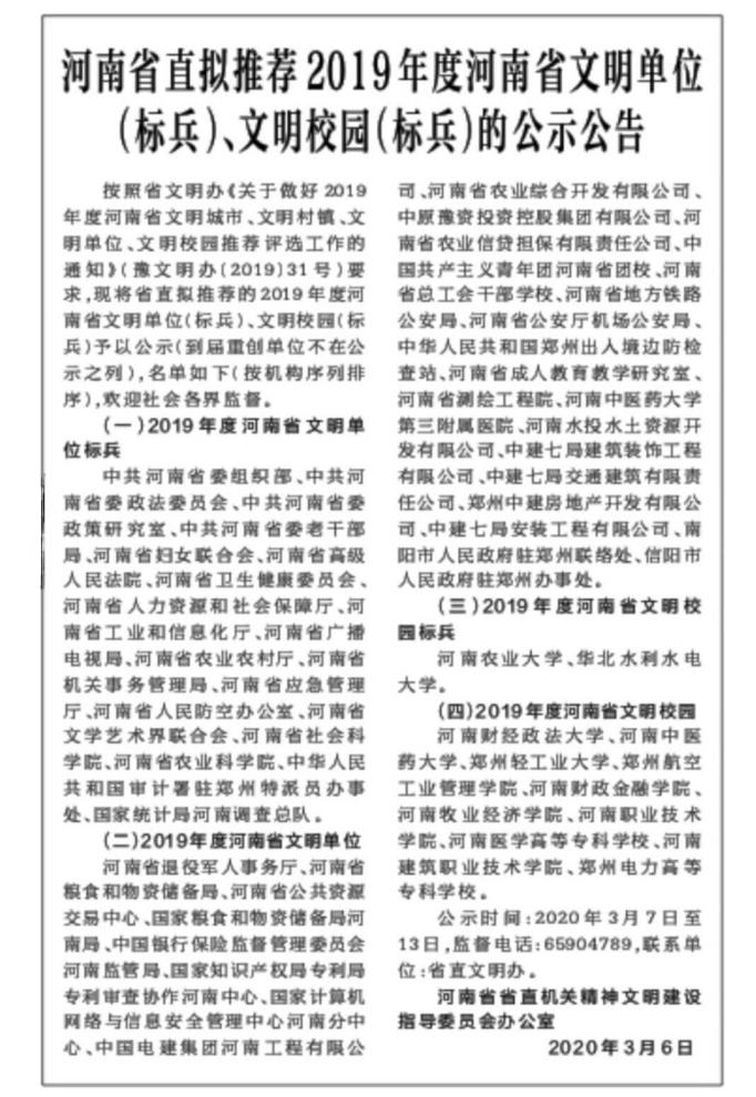 ?3月6日,河南省直機關精神文明建設指導委員會辦公室對擬推薦2019年度河南省文明單位(標兵)、文明校園(標兵)進行公式公告,其中中原豫資投資控股集團有限公司擬推薦為2019年度河南省文明單位。2019年,豫資控股集團在河南省直文明辦、省財政廳文明辦的指導與幫助下,始…